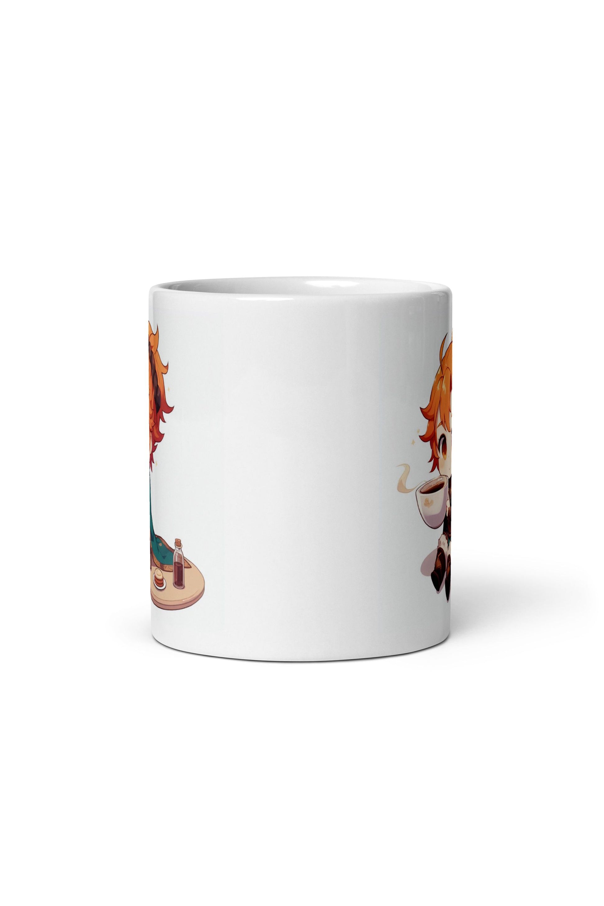 White Glossy Mug - Red Pyromancer Hot Coffee